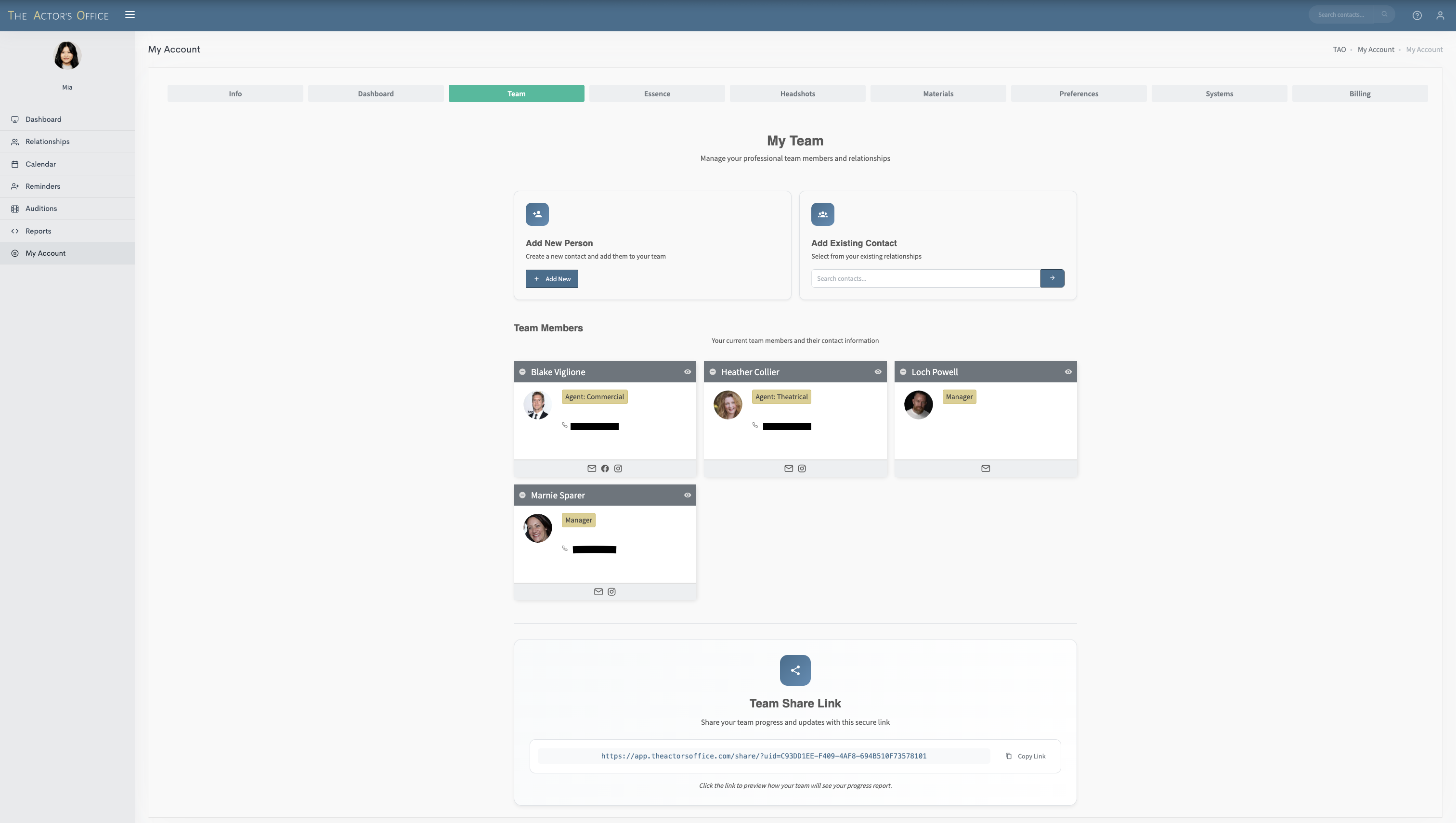 Now your team members will show up on both the “My Team” panel that’s located on your dashboard and your “My Account” Profile.