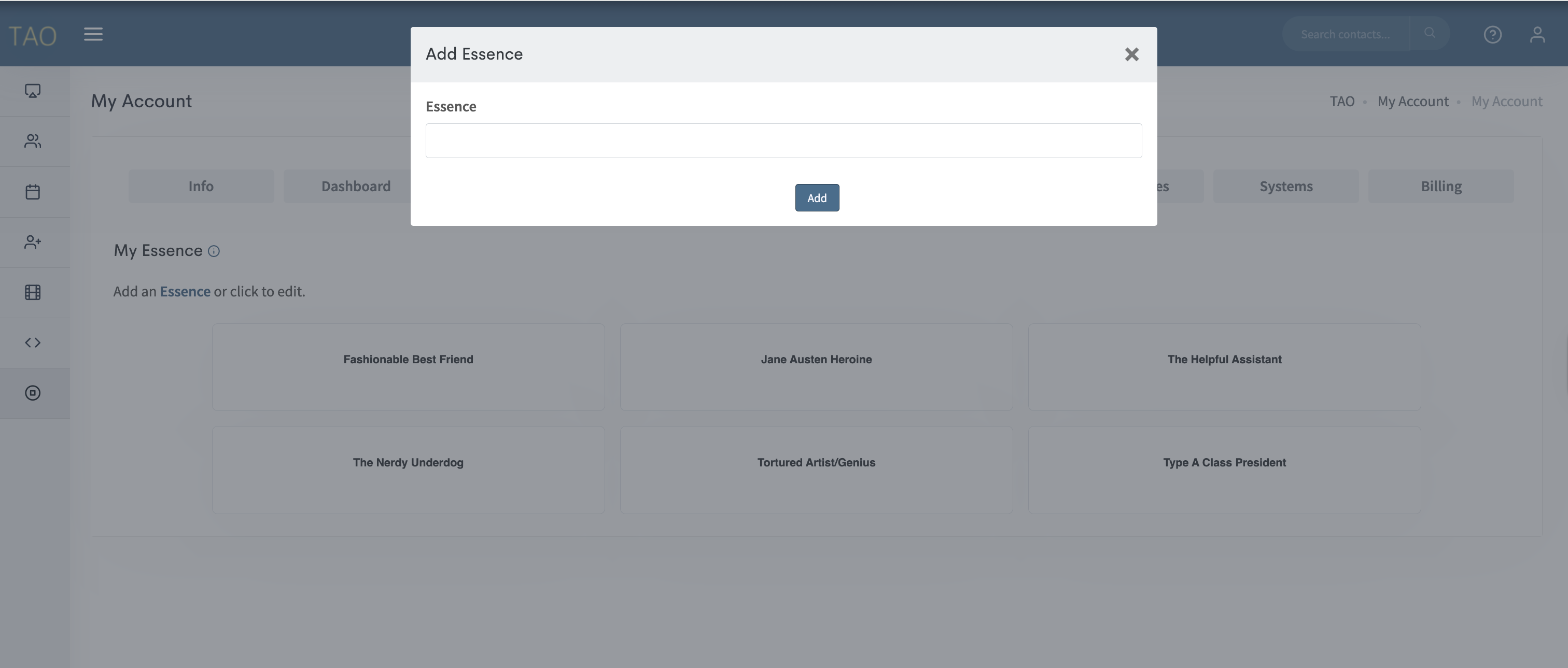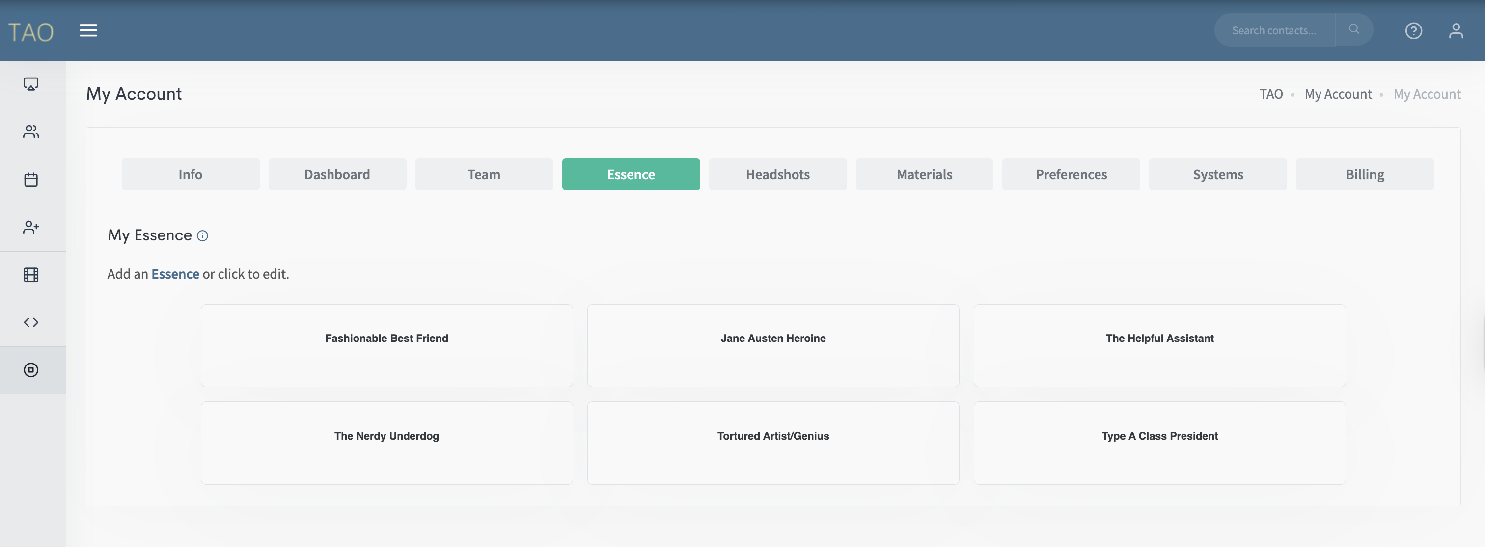 Head to “My Account,” via the left navigation menu. From there select the “Essence” tab.