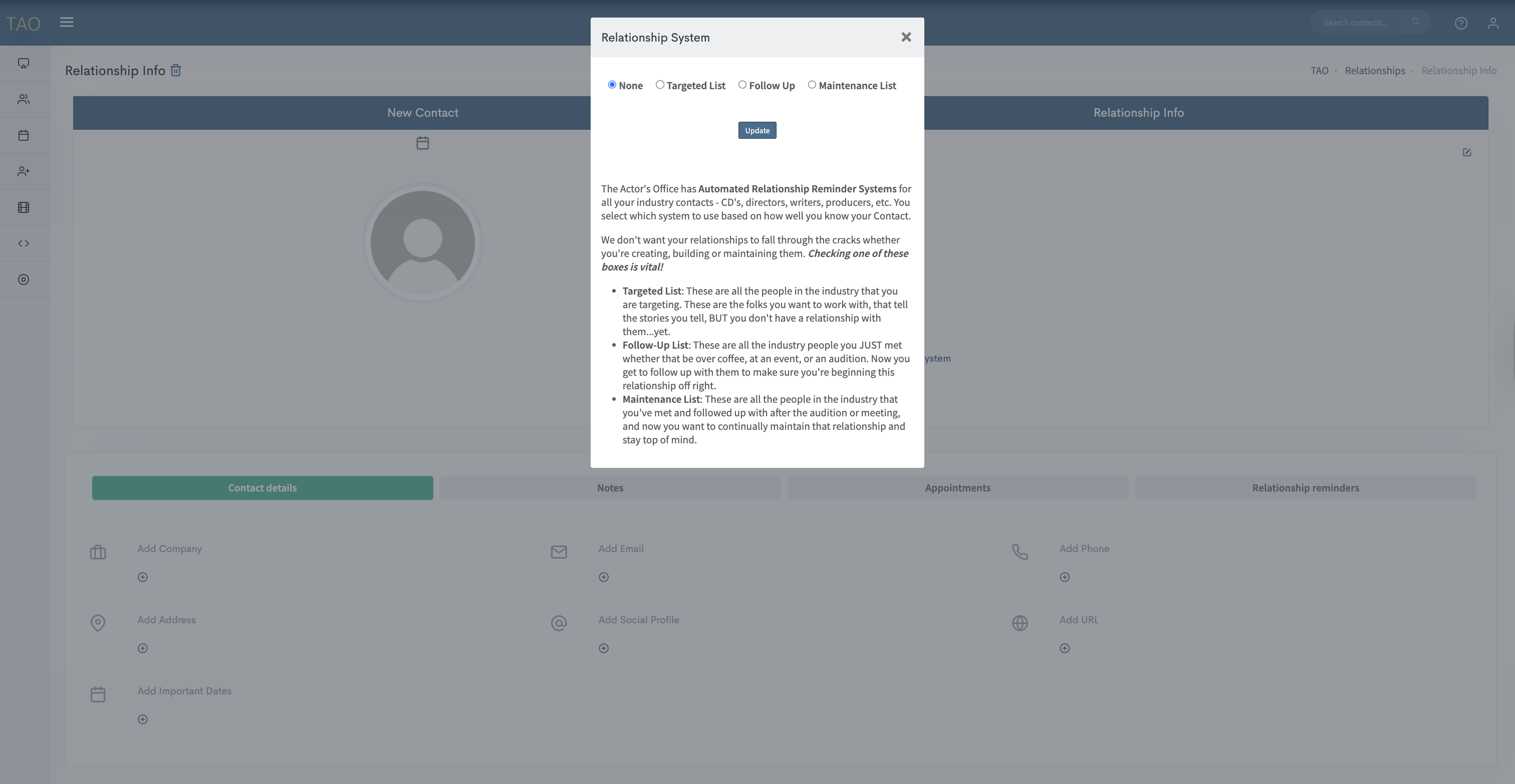 IMPORTANT: From now on, youโre going to be looking at your relationships through the lens of either Casting Directors OR Industry folks. Please make sure your Contacts are tagged appropriately before adding them to an Automated Relationships System.
